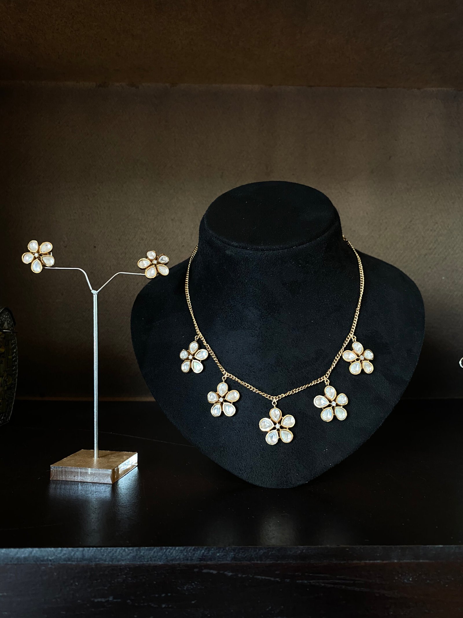 Be the first to review “Minimal White Kundan Necklace with Flower Studs”