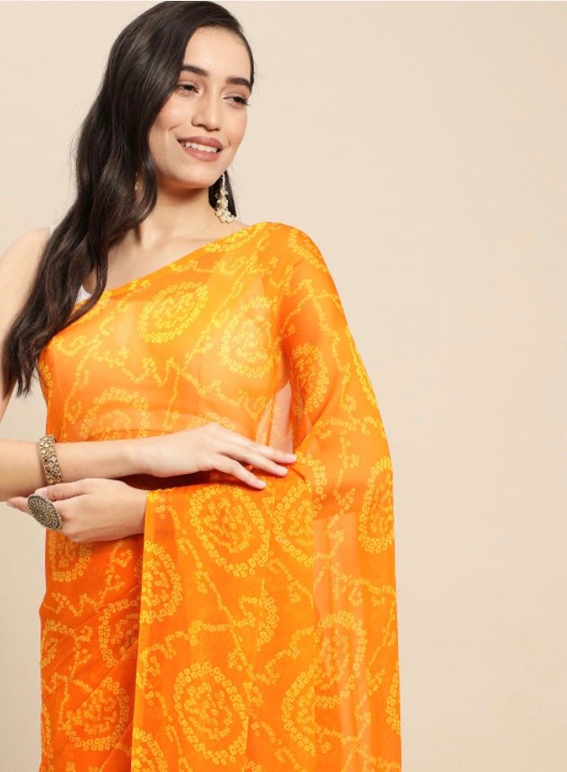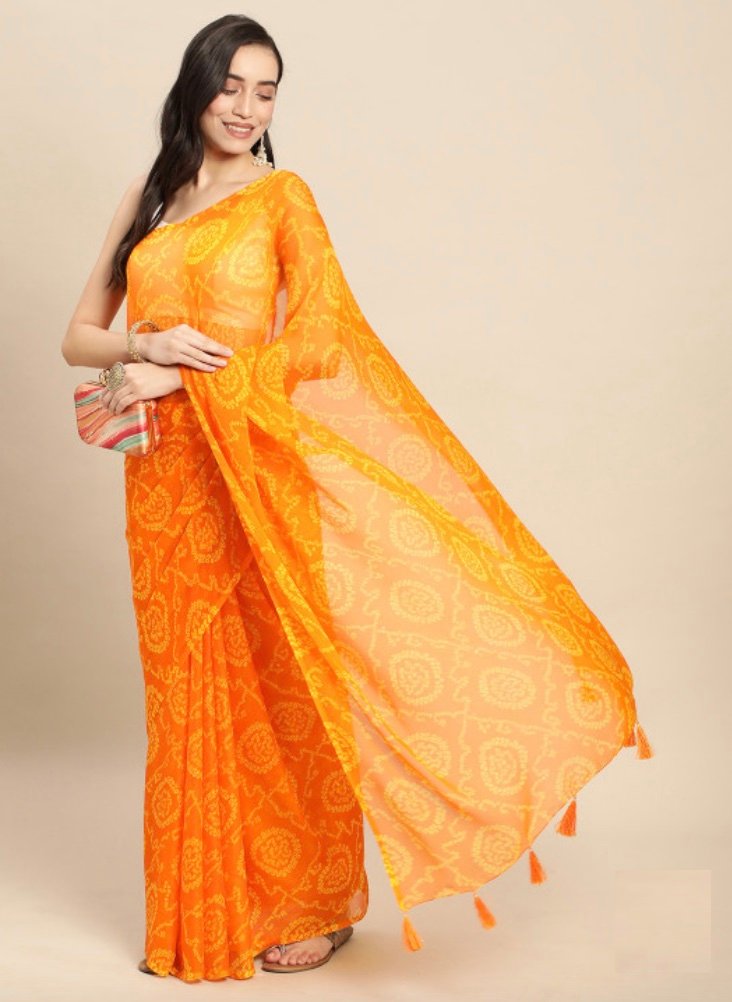 Soft Flowing Bandhini Chiffon Saree- Mango Yellow